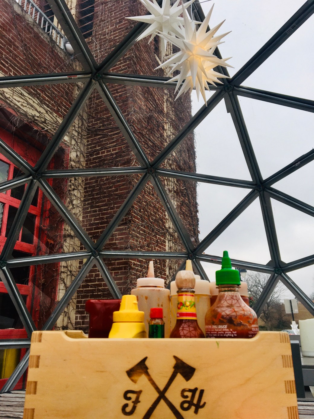 Another unique thing about this restaurant is that you can dine in heated “igloos” during the winter months. There is usually a long waiting list to dine outside, but we were able to snag it this time!