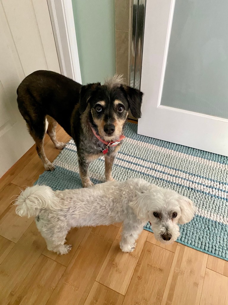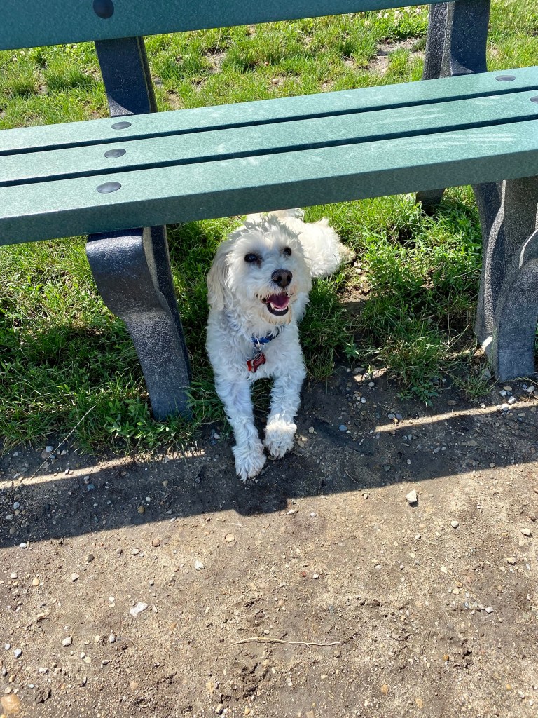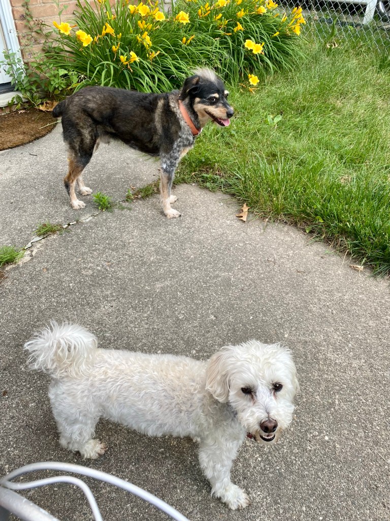 -the homeless man at the corner smiling at Linley in the car right after he got groomed (bow tie and all!)
