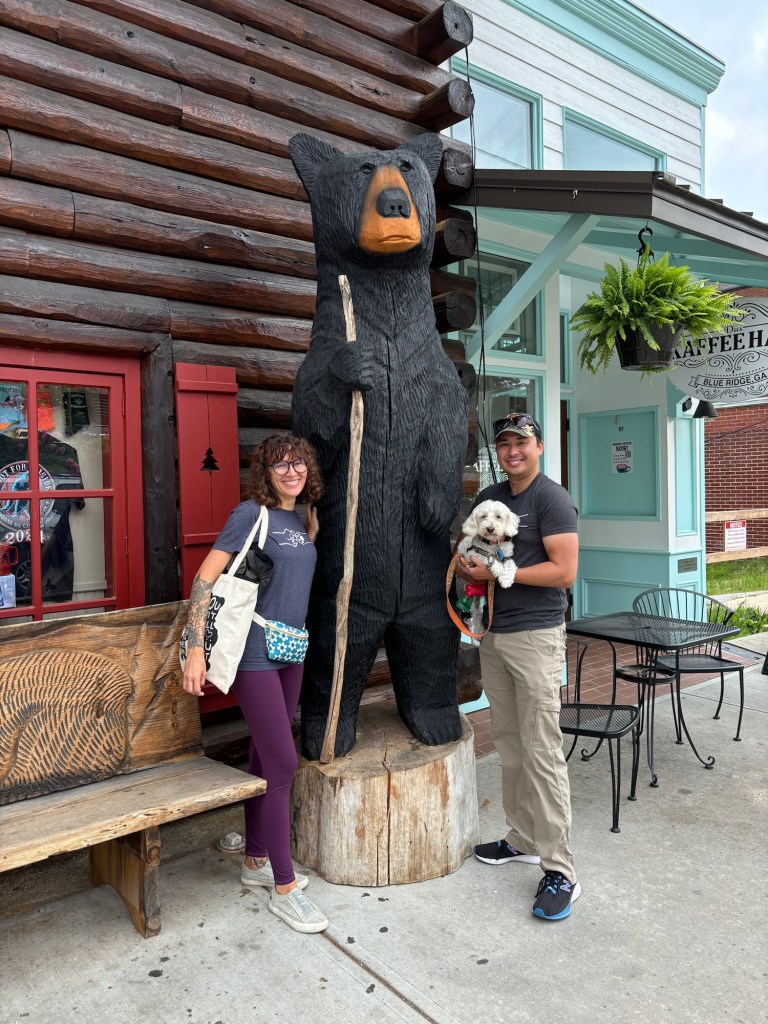 Blue Ridge was another cute town we stopped in since it was super dog friendly! We checked out some shops, took Linley to Blue Ridge Adventure Dog for a good run, some photos and toys, and had good coffee under a patio during some rain. We had great food for lunch and dinner, too!