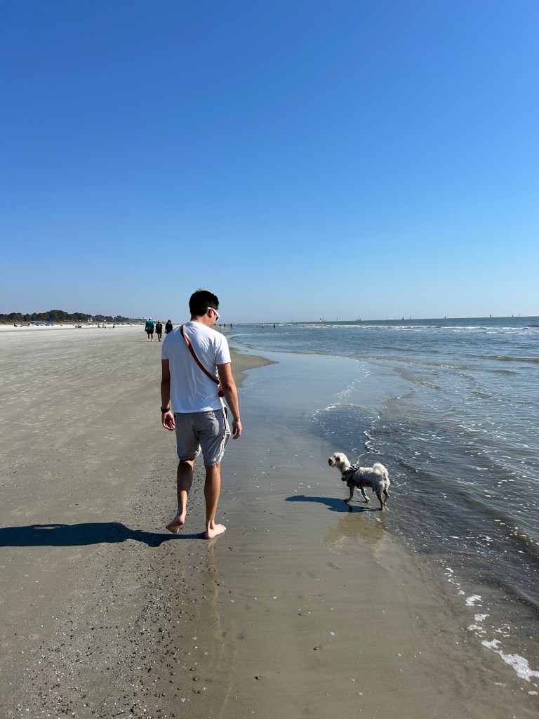 After a great night’s sleep at our Airbnb, we got ready for another great day at Hilton Head. We arrived at the beach where Linley could run free and enjoy the calm water. We met a lovely couple who Lin kept running up to, but for the most part he was by our side the entire time. I love taking Lin to the beach and it’s really special to share these moments with Alex, too!