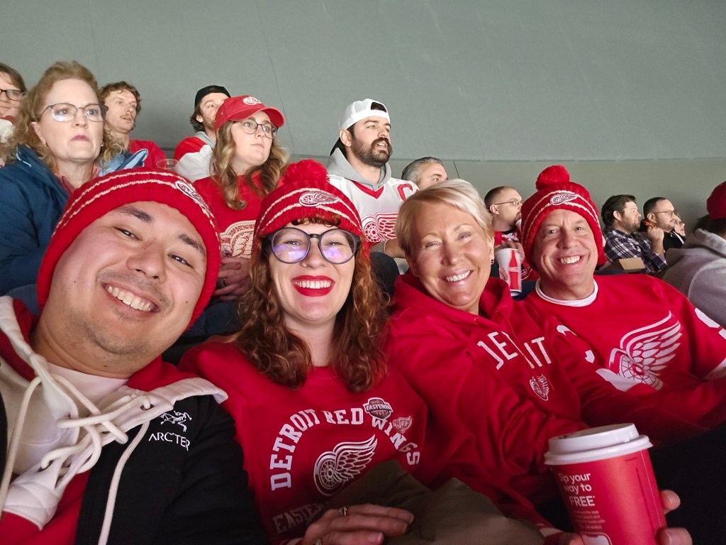 For my dad’s birthday, we went to a Red Wings hockey game and although they lost, we had a ton of fun. Little Caesars was as energetic and fun as I’d remembered, and the guys cheered with their Labatt beers before we found our seats. It was awesome to be there again.