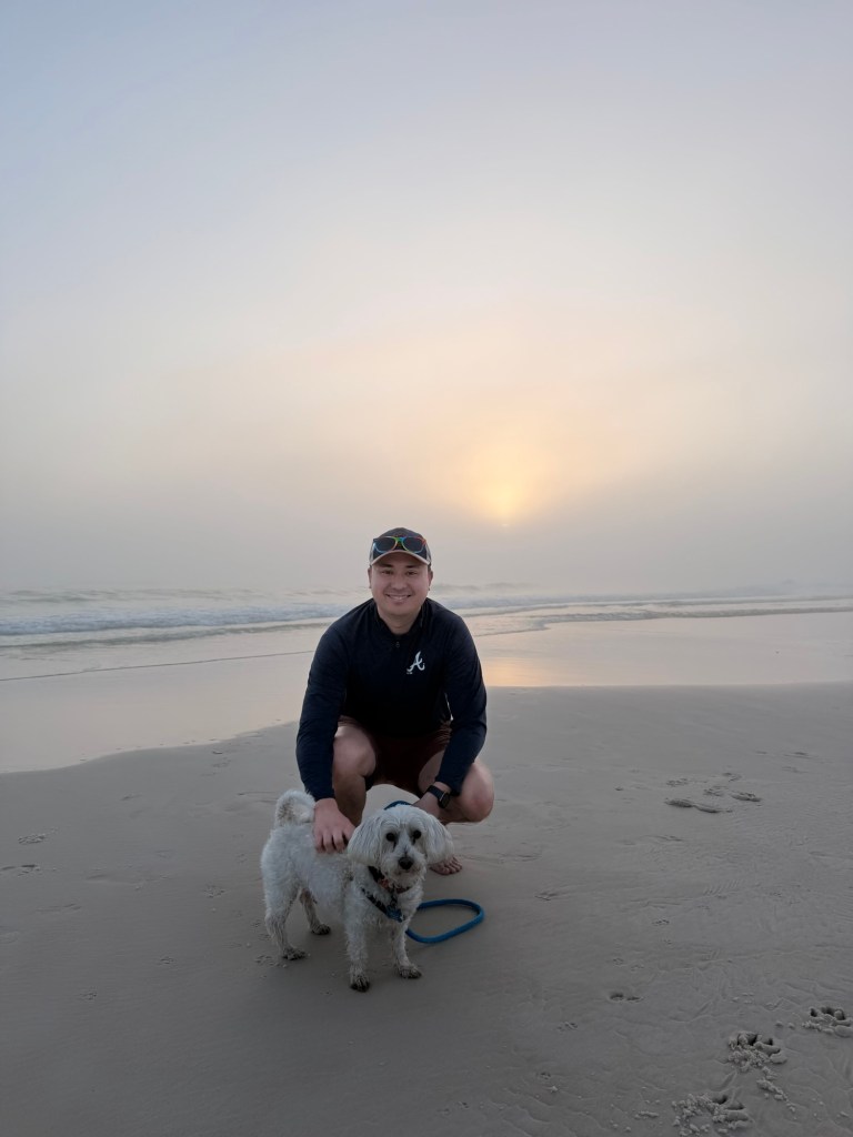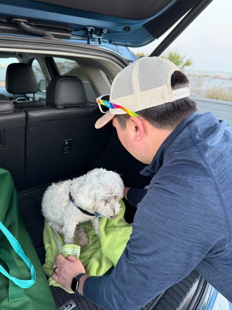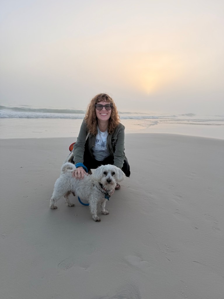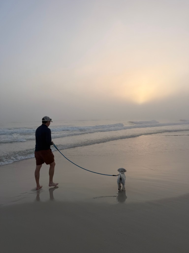 Our first sunset wasn’t the most successful, given that it suddenly became extremely foggy as we drove to the dog-friendly beach nearby. It was such a bummer because we really wanted to see it, but we were able to enjoy a sliver of it.