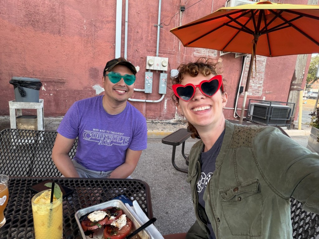 After lunch, we headed to this super cool brewery and cocktail bar before cooking at our place. I enjoyed some snacks and two mocktails while Alex had a beer and a cocktail afterward. Linley kept getting attention and we all had some fun with my heart glasses.