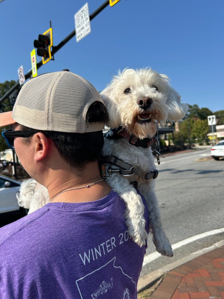 After a great night’s sleep at our Airbnb, we got ready for another great day at Hilton Head. We arrived at the beach where Linley could run free and enjoy the calm water. We met a lovely couple who Lin kept running up to, but for the most part he was by our side the entire time. I love taking Lin to the beach and it’s really special to share these moments with Alex, too!