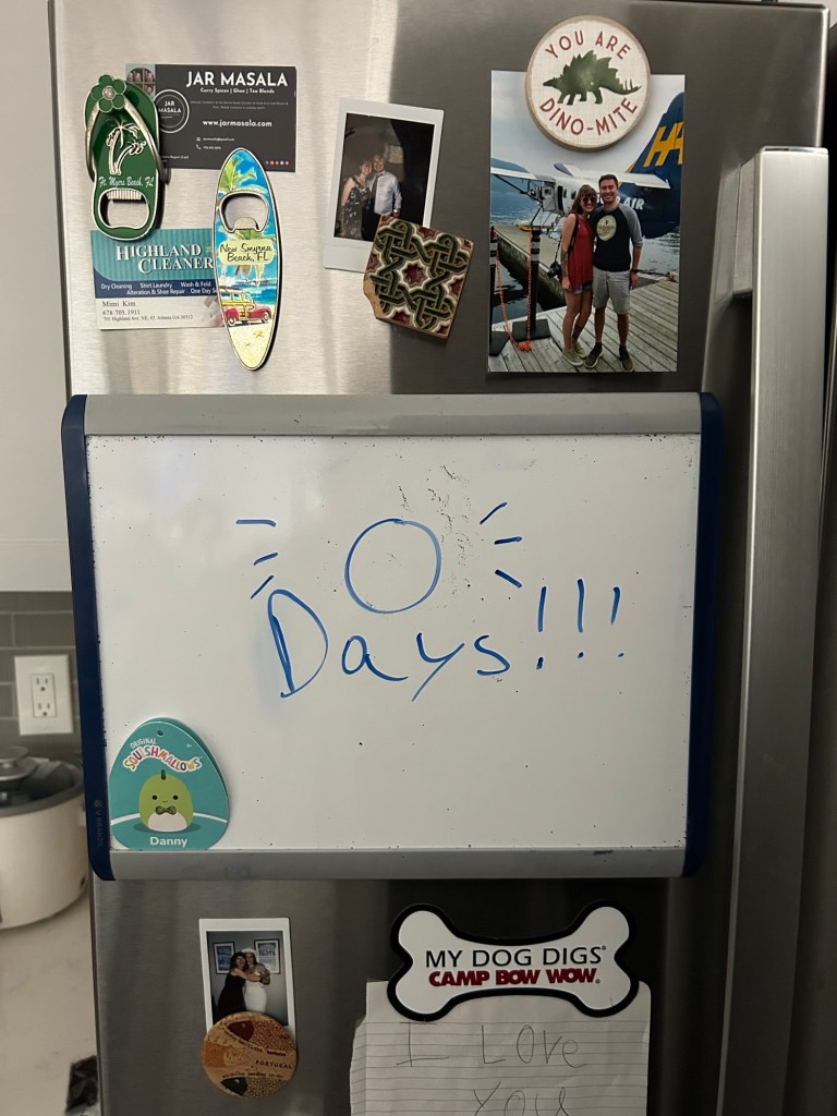 I joined Coffee Meets Bagel on June 23, had matches starting June 24, and matched with Alex on June 27 of 2023 (I have problems, don’t ask me how I can remember those dates!) Our first phone call was July 4, our first video call was probably less than a week after that, we left audio messages on days we couldn’t video chat and even saw each other in person twice in one month before I’d moved down here on Linley’s Gotcha Day. I’d known I loved Alex since before even meeting him in person last summer, but I knew I was in love with him late August/early September.