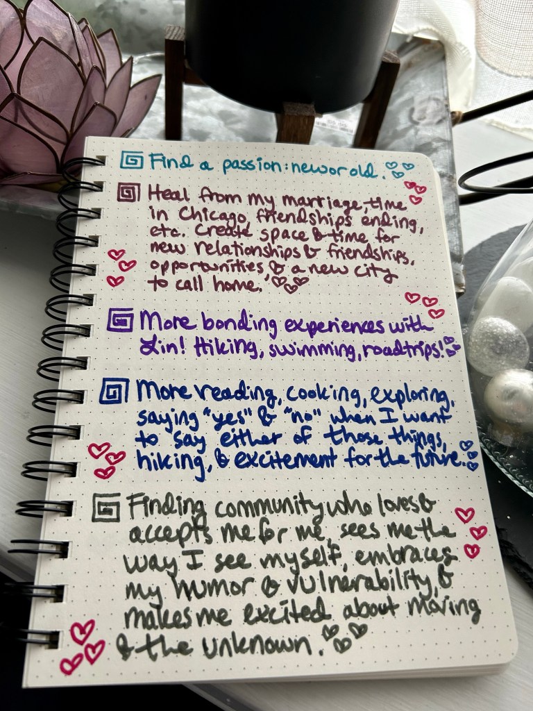 On New Years Eve, I sat with a couple girlfriends on the west side of Michigan, as we wrote down our “resolutions” (I put that word in quotation marks because I like to think of it as more ‘aspirational’ than specific, quantifiable ‘goals’). January has been an exceptionally hard month: seeing my ex-husband for the first time since our divorce and leaving Chicago, losing my dad’s best friend who we weren’t able to see prior to her passing, no longer being able to trust one of my male friends because he led me to believe he was someone he wasn’t, and my depression overall rapidly getting worse. Each month, I’m going to track my progress on each of my wishes for no one other than myself — but feel free to tag along if you wish.