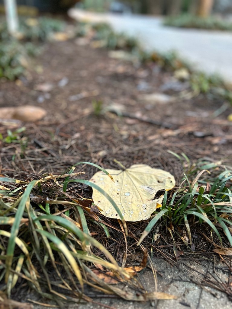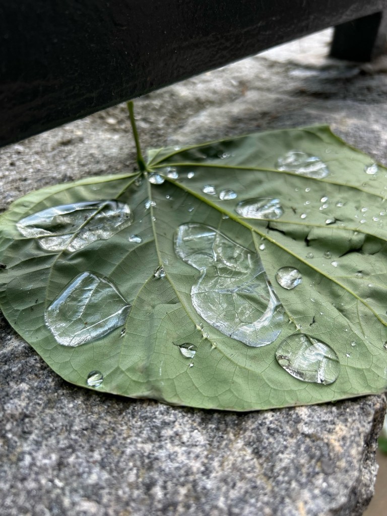 I lay awake with back pain, uncertainty with my current job interviews and applications in flight and some anxiousness around the holidays, but I’m also excited, hopeful and am feeling inspired! I don’t have much else to say; I simply wanted to share these photos because I love the big leaves and raindrops at our place. 🙂