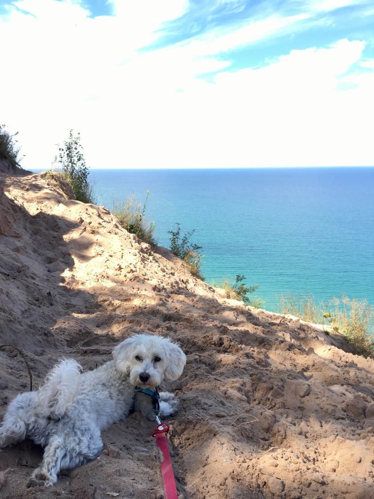 After we rested on the bluffs, we headed back down the trail, enjoyed a nice dinner in downtown Traverse City, and were back on the road again. Linley was fantastic in the car, on the beach and during our hikes; I canât imagine going on these adventures without him (or without my mom for that matter)!