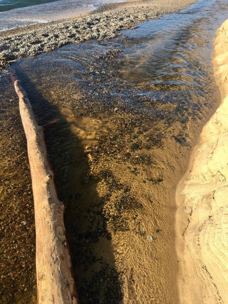 Our last evening at Pictured Rocks was by far my favorite. After some epic hiking, we returned to Lake Superior Beach to enjoy our final sunset and some good nightâs sleep. Juan and Linley needed a quick nap in the Jeep when we arrived, so I re-explored where Linley was digging around the day prior. I was drawn into the creek and the way the light was reflecting off the water.