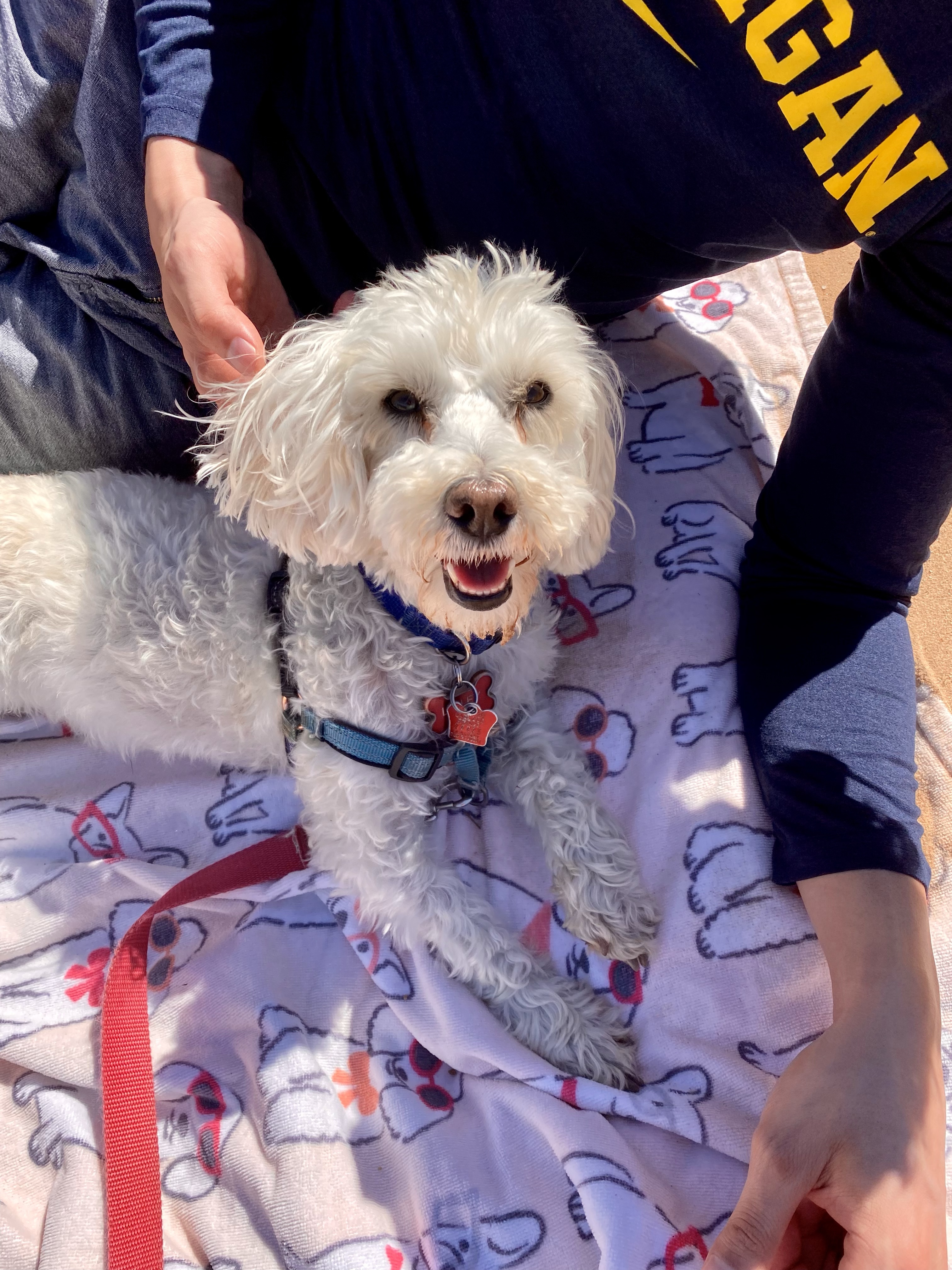 I was worried when we first got there because it looked a little overcast and started to rain slightly, but during the nearly four hours we were there it was sunny and warm the entire time. Linley loved being in the water no matter how cold it was, and we both really enjoyed hiking the dunes nearby. We spent most of the afternoon laying on the towel or in the sand watching the waves in the other dogs and people go by. It’s no wonder he’s my favorite little adventure buddy!