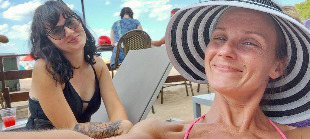 I can’t tell you how refreshing it was to hear the sounds of the water crashing on the cliffs around us, people speaking different languages again and feeling the sun on my cheeks (cheeks on my face that is — it wasn’t “that” kind of beach!) 😂