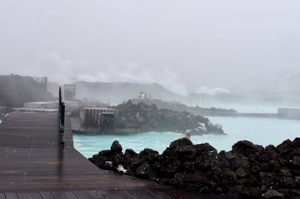 You get here, and you’re immediately hooked! The water is a misty blue color, to the point of not being able to see your body underneath the calming waves. The skies above are filled with Iceland’s unpredictable weather, yet somehow the on-and-off hail/snow doesn’t faze you once you’re immersed in the pools…