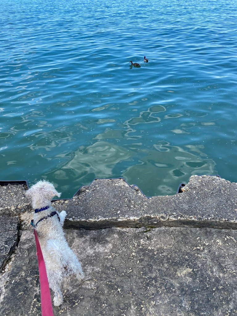 Pilgrim Haven was quite rocky compared to other dog beaches we’ve visited together, but the three of us enjoyed it nonetheless. We strolled the beach which led to a cute “pool” and scenic river, found some cool rocks and camped out in a sandy, shaded spot for Linley. He spent the majority of the time in the water, but surprisingly splooted (what dogs do when they lay on their belly with their arms and legs stretched out) in the warm sand for a while. As simple and easygoing as our time was, we had so much fun and I really needed it – almost as much as Linley needed the stick from Lake Michigan!