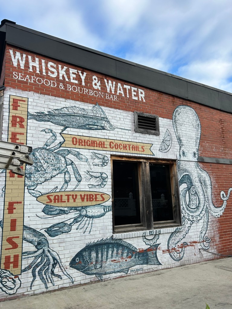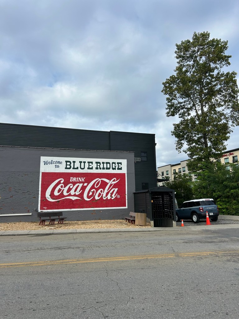 The next morning, enjoyed the sunrise and then we walked around town and grabbed coffee (and a pup cup!), from a cute cafe called Mountain Momma’s Coffee, and enjoyed all the murals downtown. Being in Blue Ridge a second time really reminded me of northern Michigan and it was a great way to round out our summer travels.