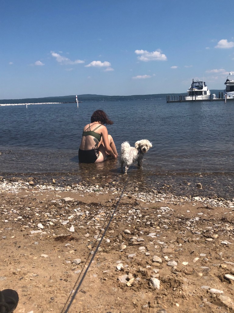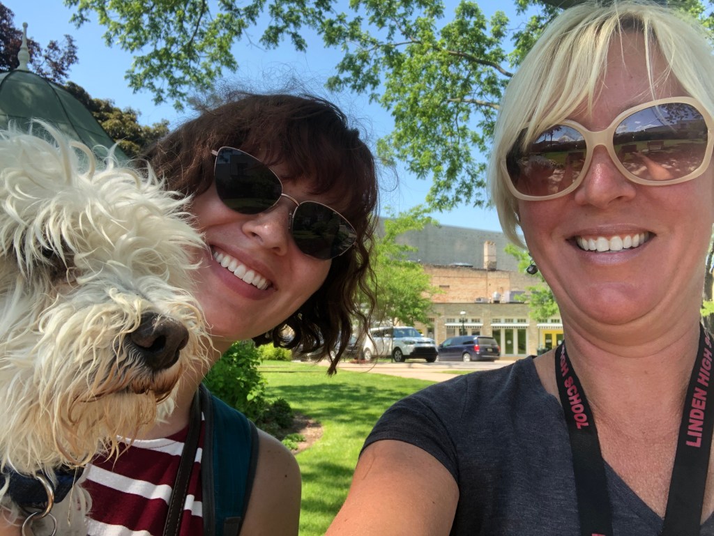 We chose to stay one night because our day trip to Empire and Traverse City felt rushed (plus that’s a lot of driving for one day, especially for the pup!). Once we arrived on Wednesday afternoon, we walked around downtown, Lin marked every plant and we had a tasty lunch at a picnic table. We all had some ice cream afterward and Linley stole all the hearts of the customers behind us!