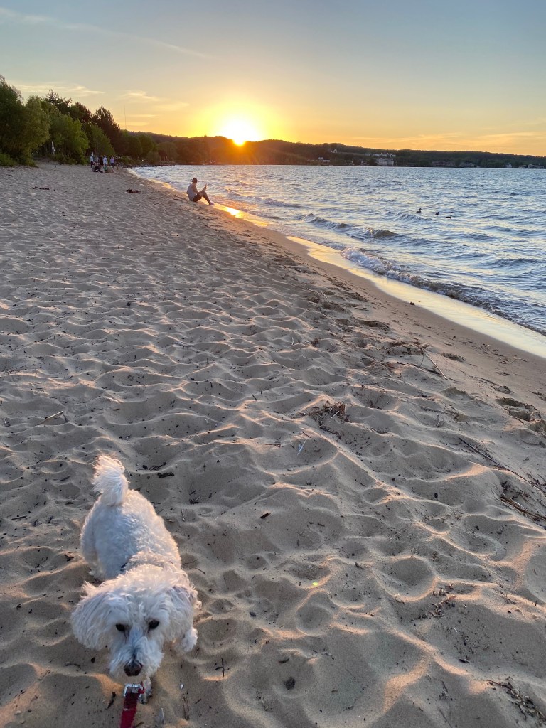 The three of us enjoyed one last sunset on Grand Traverse Bay, for now at least. This was our last up north trip in Michigan for the summer, and I appreciated our time snuggling on the beach more than ever. We listened to the waves crash against the shore, watched an air balloon travel past us and saw the sky change from blue to orange before heading home.